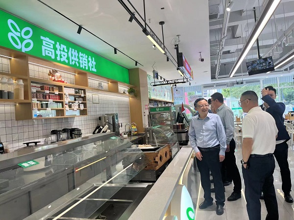 在南悅里高投供銷社,劉羽一行現(xiàn)場了解高投供銷社大食堂和生活超市經(jīng)營情況,查看超市“平昌專柜”商品銷售情況,就實施“開放辦社”戰(zhàn)略、深化綜合改革具體做法和經(jīng)驗進(jìn)行了交流。