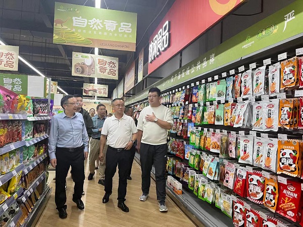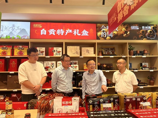 在自然貢品華商旗艦店,劉羽一行重點了解店面經(jīng)營管理模式、商品分區(qū)設(shè)置、產(chǎn)品開發(fā)銷售、供應(yīng)商合作模式、線上商城建設(shè)等方面情況,就推動打造“自然貢品”和“巴食巴適”兩個區(qū)域公用品牌集中展示展銷專區(qū)進(jìn)行了交流探討。